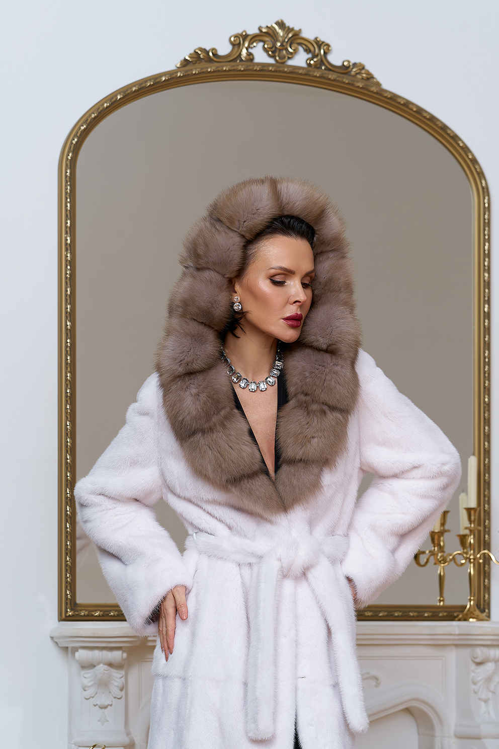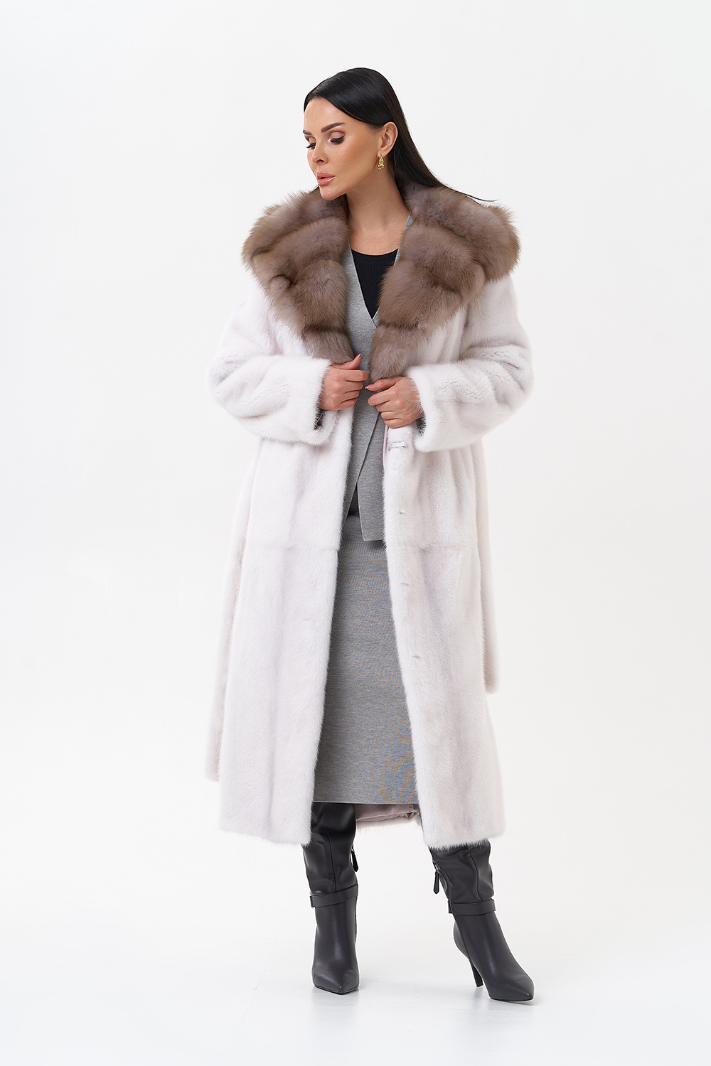 Тип ворота - капюшон, отделка куница